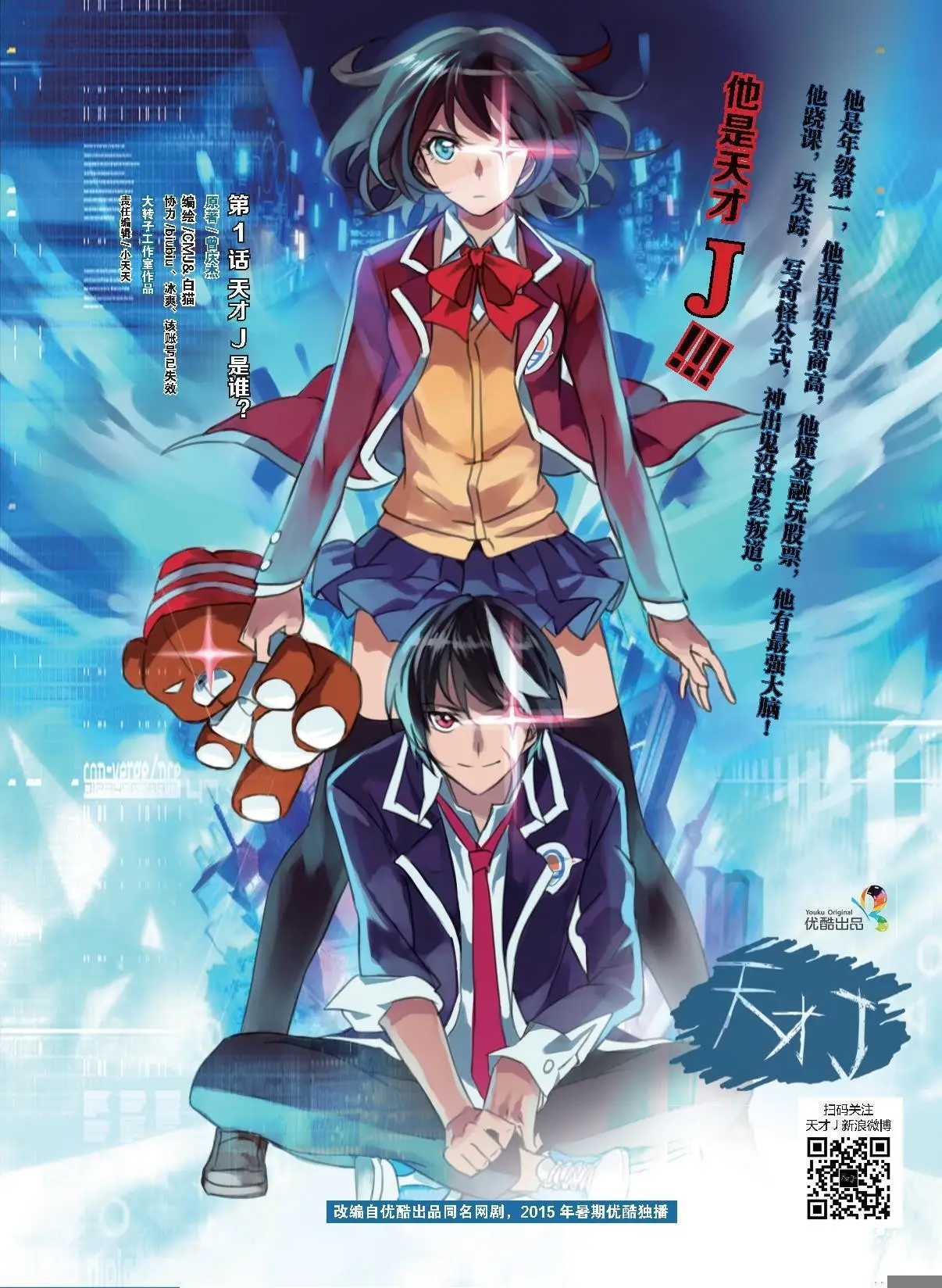 《天才J》由优秀青年导演曾庆杰携其简单人工作室创作拍摄,将于2015年暑期在优酷独家上演。《好漫画》创办人、著名出版人杨小邪在看了一段样片后,就觉得这是最具漫画感的网剧,旋即决定与优酷出品合作,并邀请到著名漫画作者白猫和CMJ联手执笔改编,打造一部精品漫画。