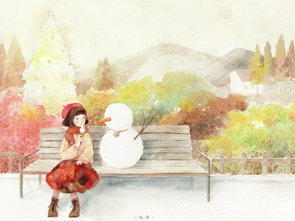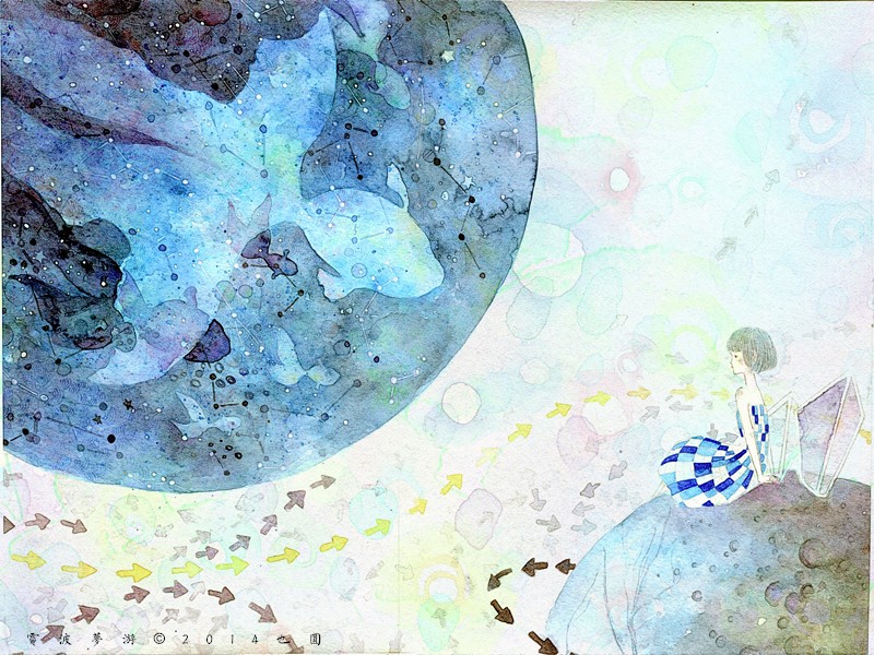 也圆绘画以水彩为主,偶尔板绘。偏爱水彩独特的流动感与透明感,缓慢摸索学习中。我们先来欣赏几幅作品吧。