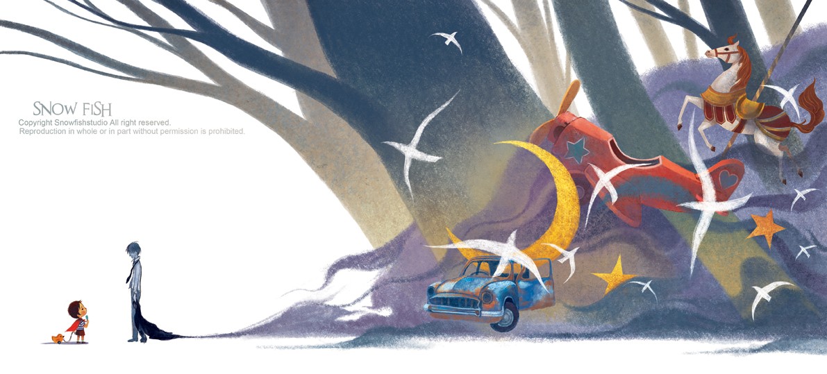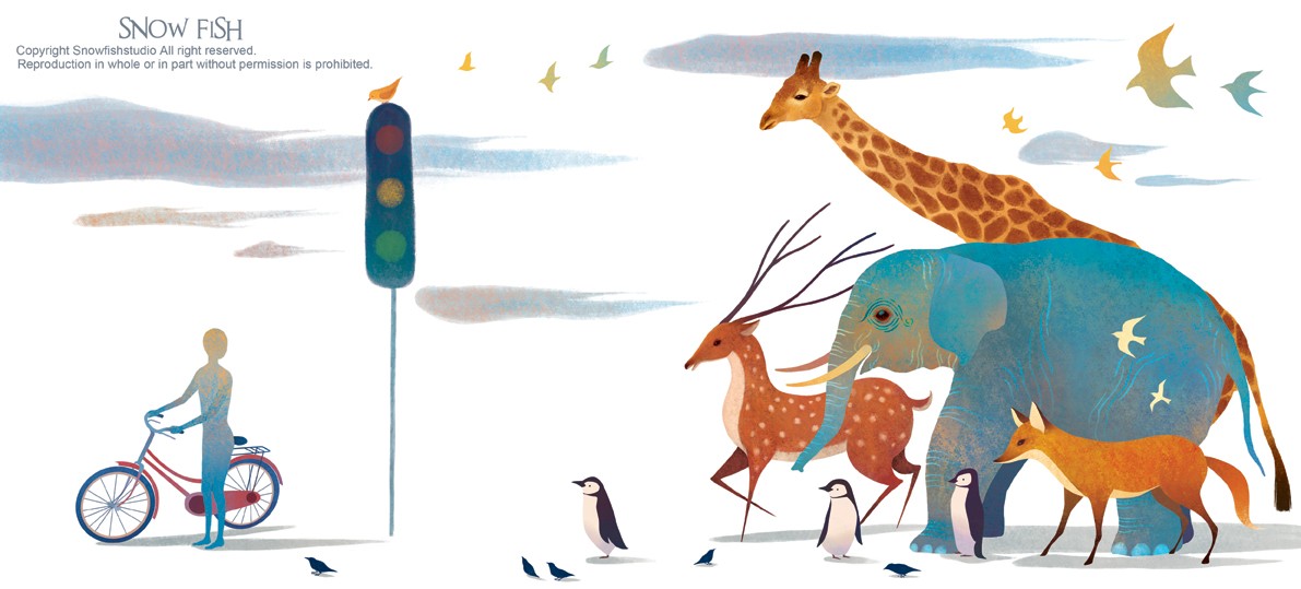雪鱼在微博的简介里,是一个儿童绘本画师,看了他的画,我想他在这方面一定是出色的,因为这些画空灵又不失温暖,每个小动物的眼神都是温柔善意的,非常适合小朋友呢,当然,也适合我这种大朋友。