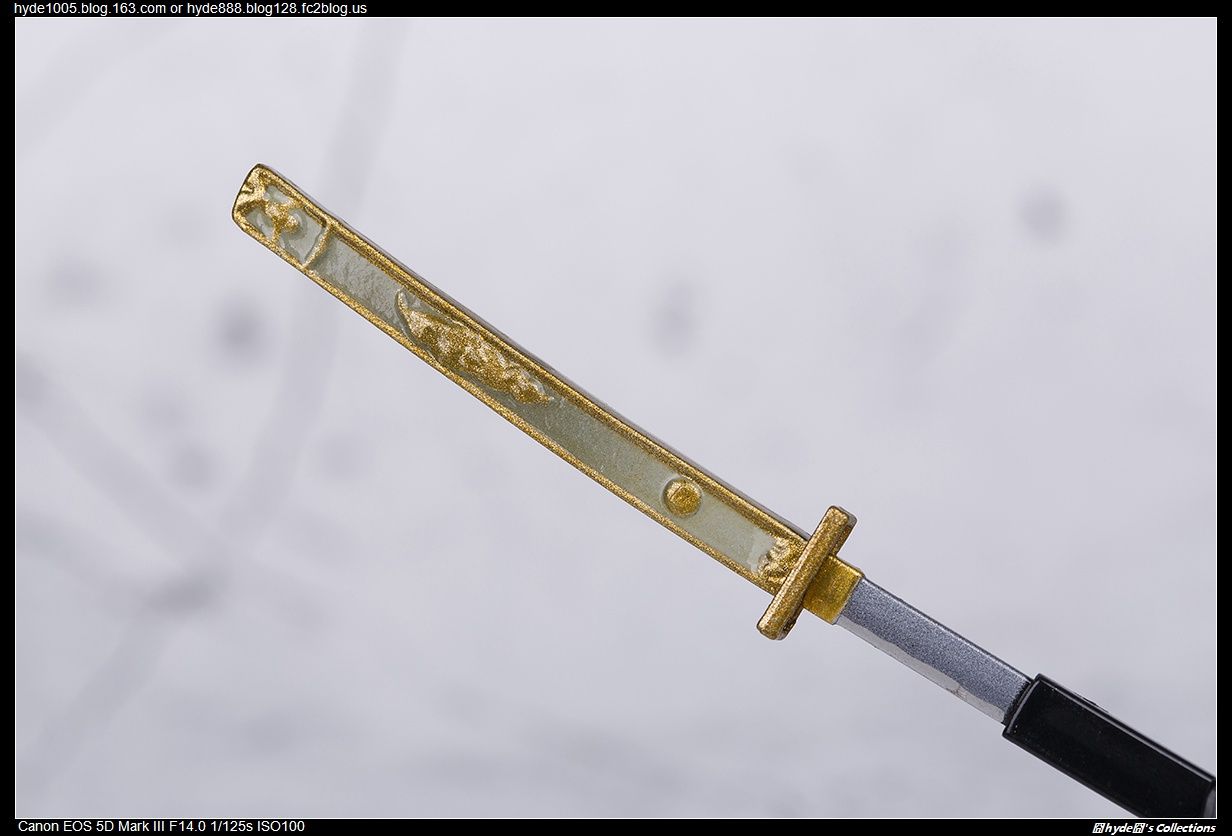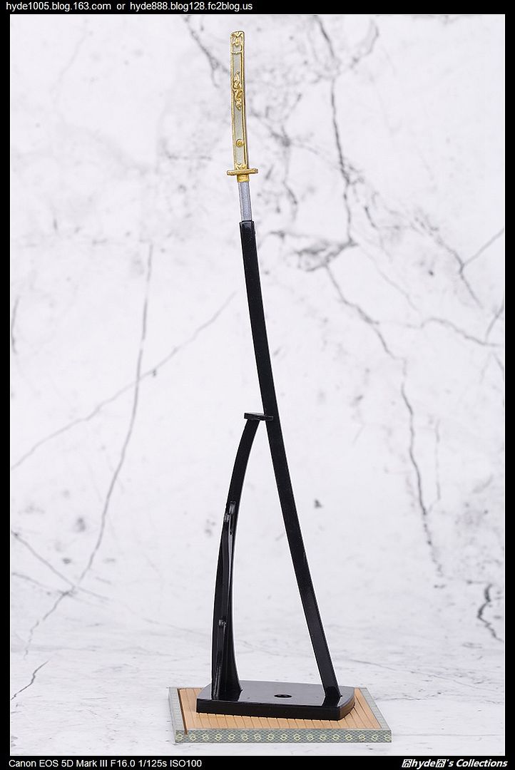 左手手握刀柄,右手轻轻握住剑鞘。留意安装时候请勿过度用力与她的白色手袜发生摩擦,以免掉色而留下痕跡。