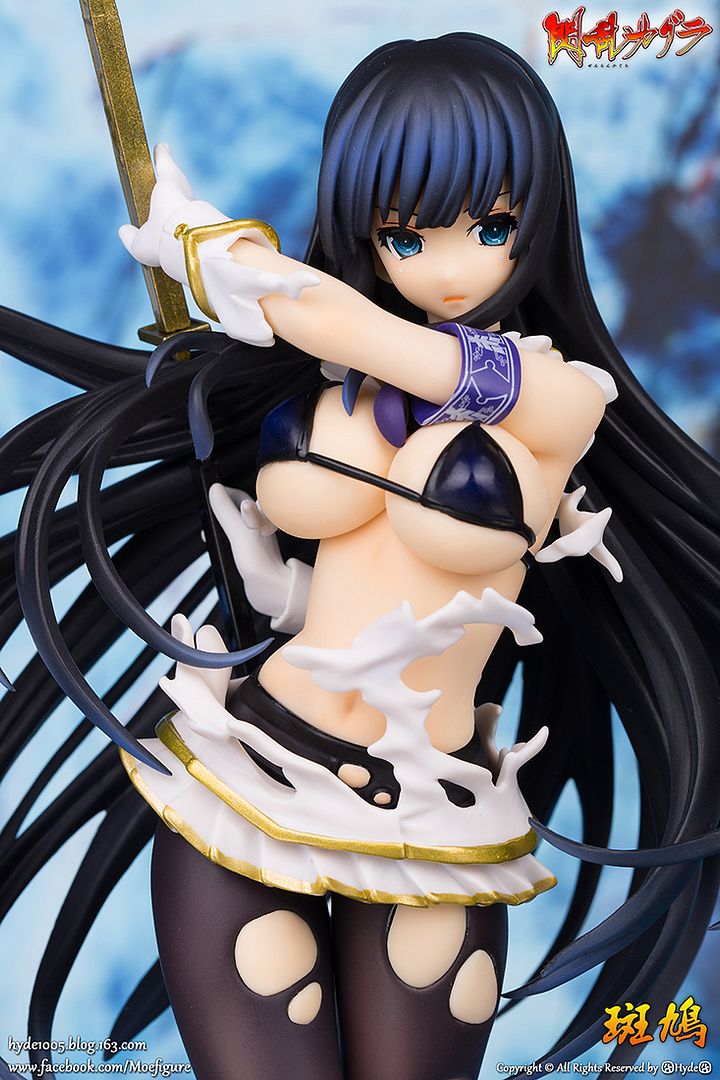 本作的主角是来自剧中国立半藏学院的3年级生,个性沉着冷静的班长「斑鸠」。再现忍装束的第一阶段破坏状态,融入了战损元素的凌厉英姿,相信若购买了的朋友也是跟我一样,都给她那别致的动人造型所吸引。仿佛是在执行任务中遭受敌袭的斑鸠,在孤军抵抗之下也难免丝毫无损,从身上的衣服破损程度已经略感一二。不过从她脸上那冷艳沉着的表情中仍然看得出她毫无畏惧,冰蓝的双眸中映照出坚毅不移的眼神。她正气定神闲地展开步伐,手拿她的爱刀「飞燕」并摆出拔刀术的架势。即将要施展必杀技那一瞬的静止画面,其威风凛凛的姿态顿时令周围充满了慑人的气场。而作为她大和抚子象征的黑长秀发,也随着狂风在胡乱飞舞,犹如在向我们诉说着战场上的残酷,更是衬托起她那优雅而武勇的拔刀姿态。当然,既然是美少女手办,所谓的战损只是营造气氛,就像动画一样,爆衣不得爆人,这是定律,也是工口的美学。从她破损的外衣中,大家可以欣赏到她外露的白皙嫩滑肌肤,迷人火辣的身段,还有那性感诱人内衣下隐藏的丰满工口欧派。而为了照顾和满足爆甲喜好的玩家,破碎裙子部份是可以移除的,这样就让玩家更加容易地去仔细欣赏斑鸠的魅力酮体了。