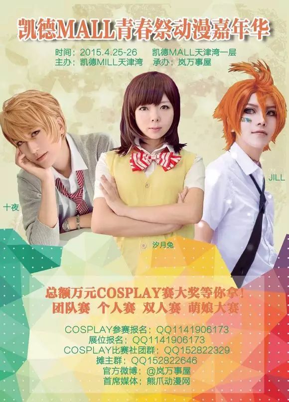 春暖花开,你想象中的漫展有什么?免费门票OR白菜价摊位OR免费摄影场景?精彩比赛OR炫酷好玩的活动?2015年4月25-26日,小伙伴们期待已久的第三届凯德MALL青春祭动漫嘉年华又与你相约在凯德MALL天津湾啦!
