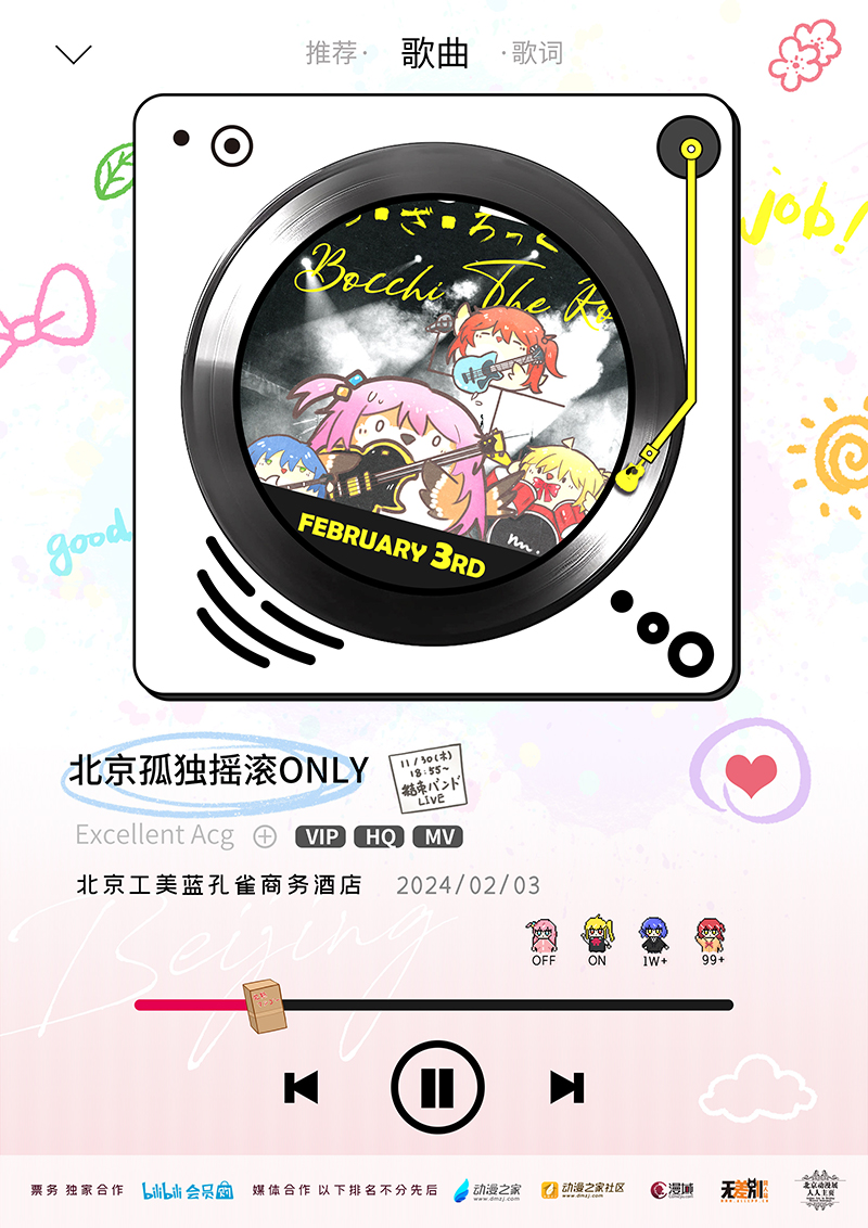 孤独摇滚ONLY2月3日相约北京工美蓝孔雀商务酒店。贝勾票【B站会员贝勾】https://show.bilibili.com/platform/detail.h...