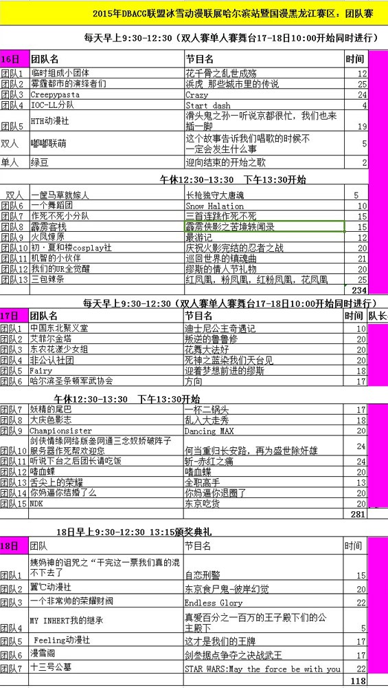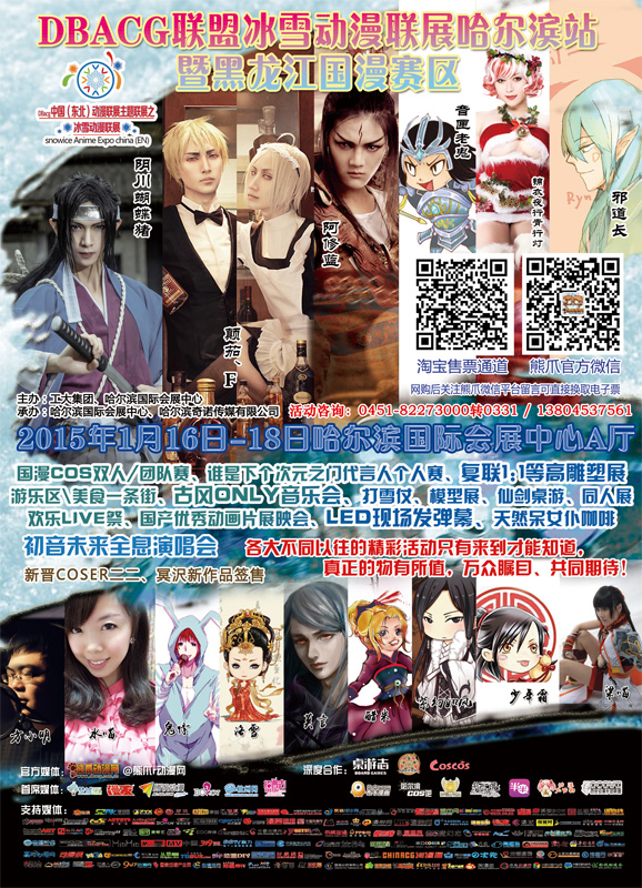 DBACG联盟冰雪动漫联展哈尔滨站暨国漫龙江赛区节目表放出!