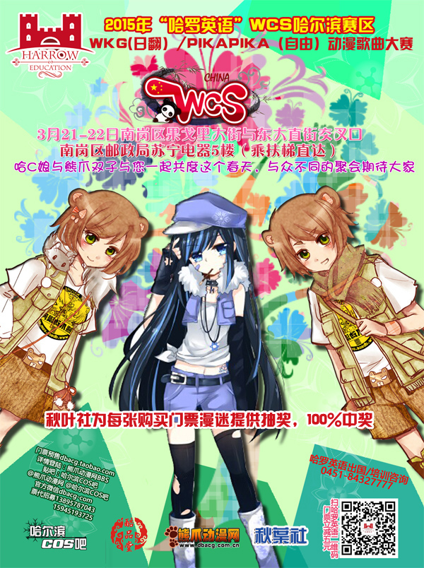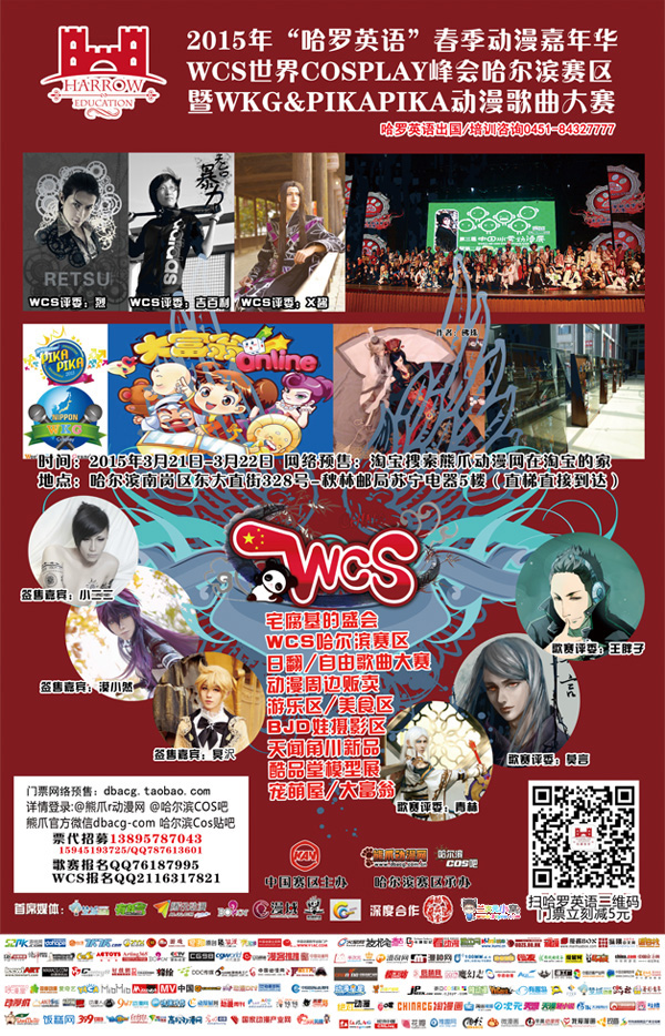 活动:2015哈罗英语春季动漫嘉年华暨WCS哈尔滨赛区精彩活动升级!!WKGIKAPIKA动漫歌曲赛首次来哈!