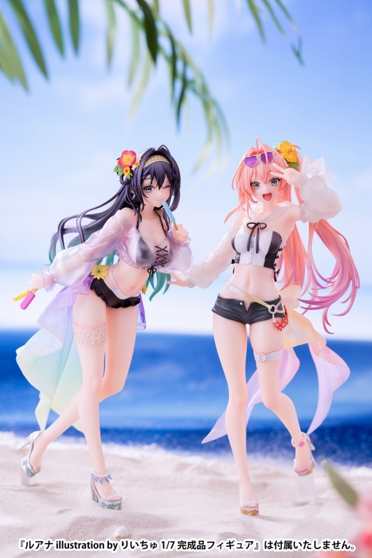插画师Riichu老师原创的看板娘莉安娜、卢安娜,以1/7的比例实现了手办化。莉安娜的双马尾闪耀着美丽的粉红色光泽。黑白比基尼配上牛仔短裤,加上带花纹的白色纱巾...