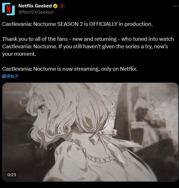 Netflix《恶魔城:夜曲》宣布第二季续订决定,目前第一季已一次性放出。《恶魔城:夜曲》第一季讲述了1792年的法国大革命时期,聚焦这位曾在游戏《恶魔城:月下...