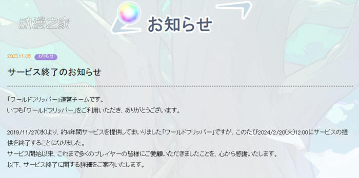 今天CY宣布旗下手游《弹射世界》将于2023年12月18日11:00停止计费功能,最后的扭蛋和活动角色将于2023年11月30日之前添加,新Boss和新装备的添...