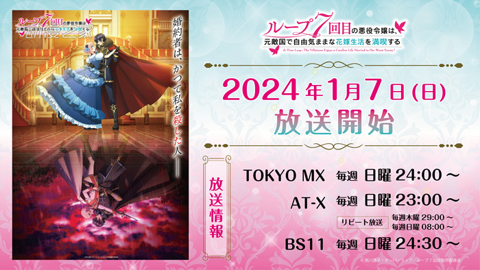 TV动画《轮回七次的恶役千金,在前敌国享受随心所欲的新婚生活》决定于2024年1月7日开始播出。与此同时,连续7周每周公开以不同角色为焦点内容的“循环7Week...