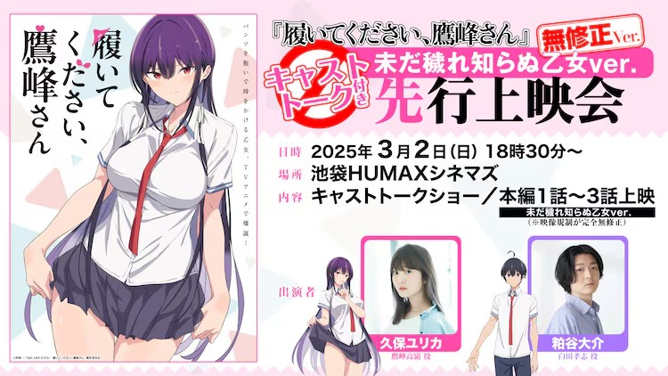 改编自柊裕一原作的TV动画《履いてください、鷹峰さん》宣布上坂すみれ和富田美憂加盟配音,并公开了主PV。上坂将饰演白田小学校时代的同学絵梨依・エバーグリーン,富...
